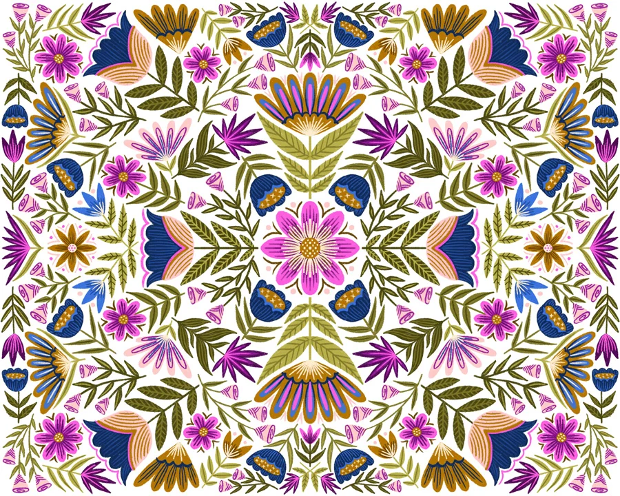 Folksy Florals is a system of patterns and designs I have created that take a modern twist on folk art.