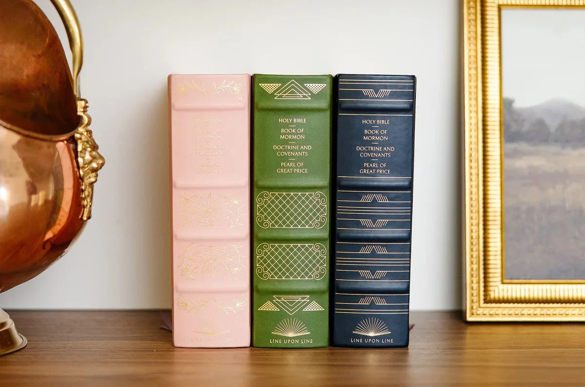 I had the opportunity to design the intricate covers of faux leather scriptures for Line Upon Line. We created a feminine option as well as two gender neutral or male leaning options for their customers. The designs were gold embossed onto the scriptures.